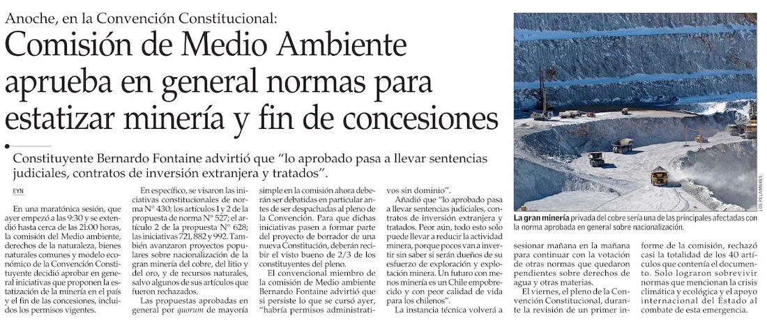 Comisión de Medio Ambiente aprueba nacionalizar las mineras - (La Tercera)