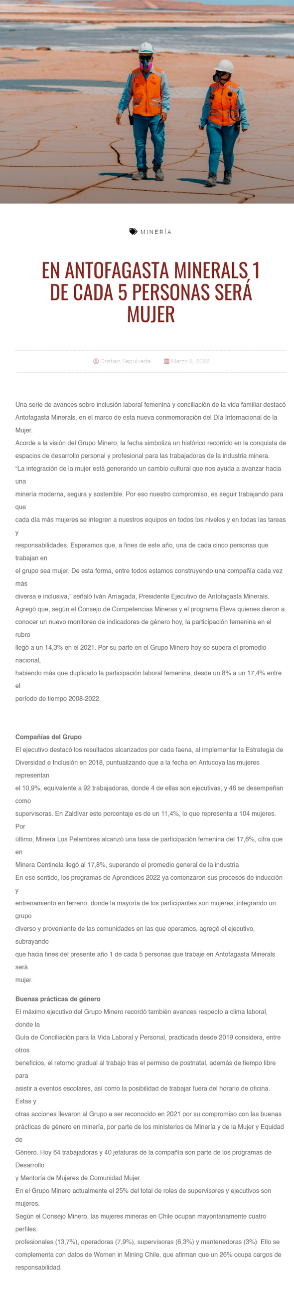 En Antofagasta Minerals 1 de cada 5 personas será mujer este 2022 - (timeline)