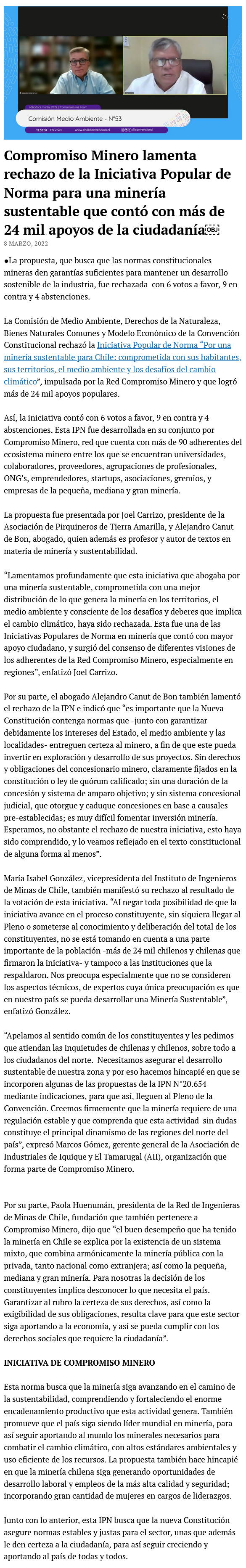 Compromiso Minero lamenta rechazo de la Iniciativa Popular de Norma para una minería sustentable - (elamerica)