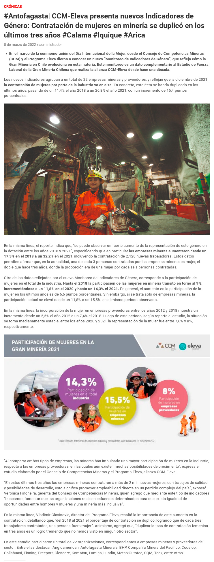 Estudio indica que la contratación de mujeres en minería se duplicó en los últimos tres años en Chile - (reportesostenible.cl)
