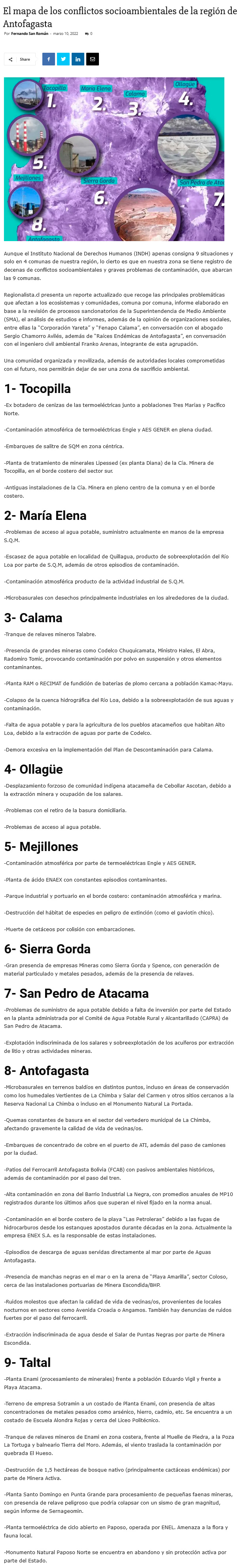 El mapa de los conflictos socioambientales de la región de Antofagasta - (elregionalista)