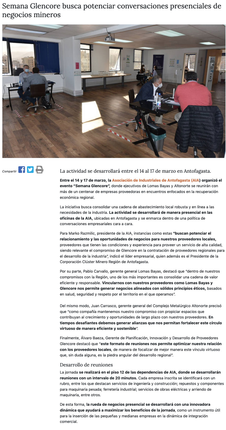 Con gran interés y participación de proveedores locales se desarrollará la “Semana Glencore” - (madero.cl)