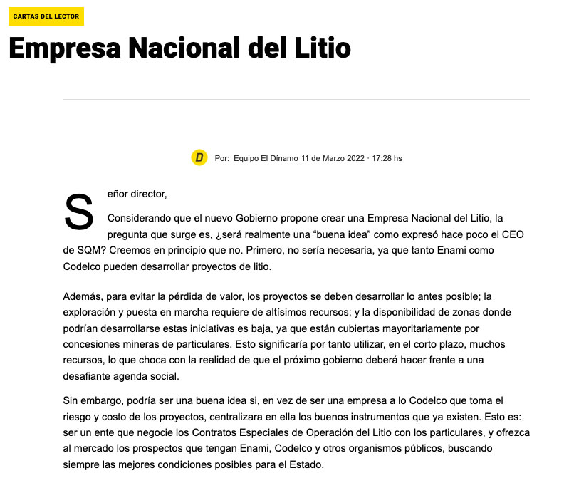 Empresa Nacional del Litio - (El Mercurio de Antofagasta)