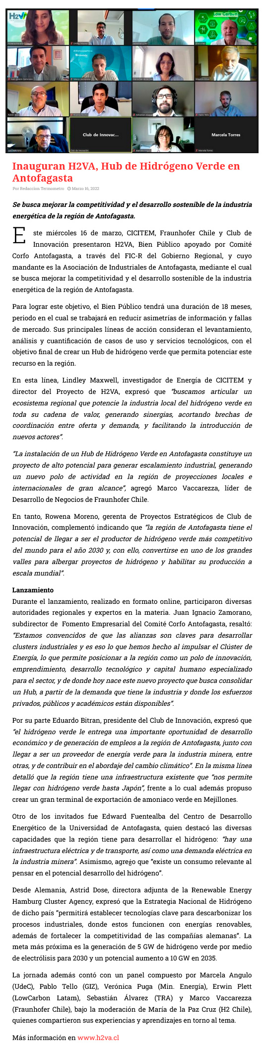 Inauguran H2VA, Hub de Hidrógeno Verde en Antofagasta - (El Mercurio de Antofagasta)