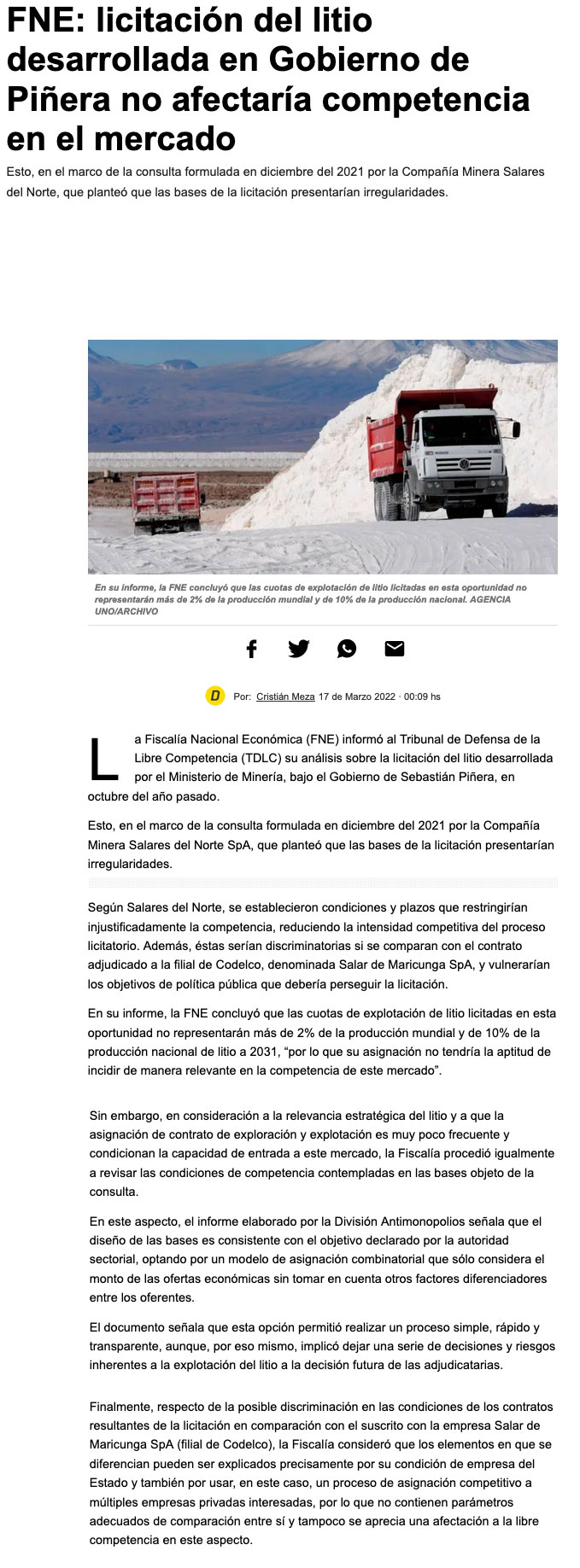Esto fue lo que dijo la FNE respecto a la licitación del litio - (mch.cl)