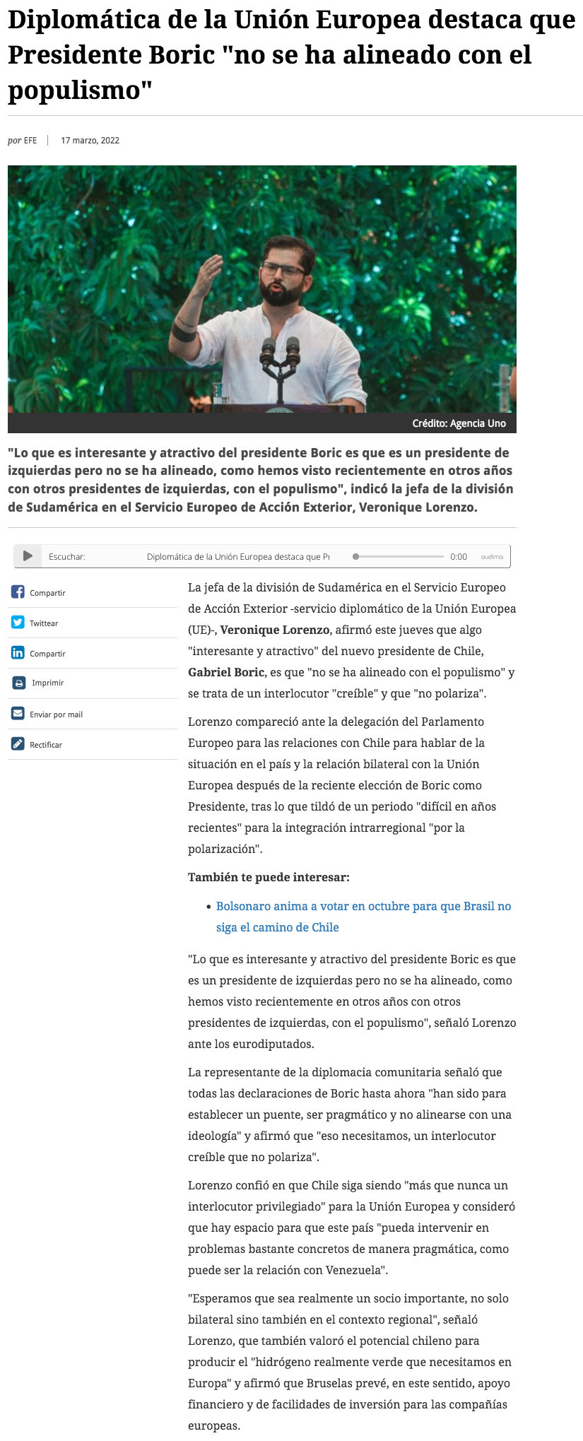 Bruselas valora que Boric "no se haya alineado con el populismo" - (cooperativa online)