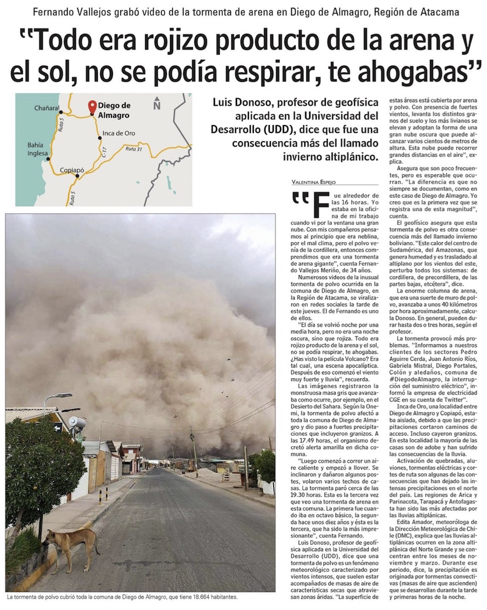 Tormenta de arena oscureció los cielos de Diego de Almagro y granizo afectó gravemente a Inca de Oro - (El Diario de Atacama)