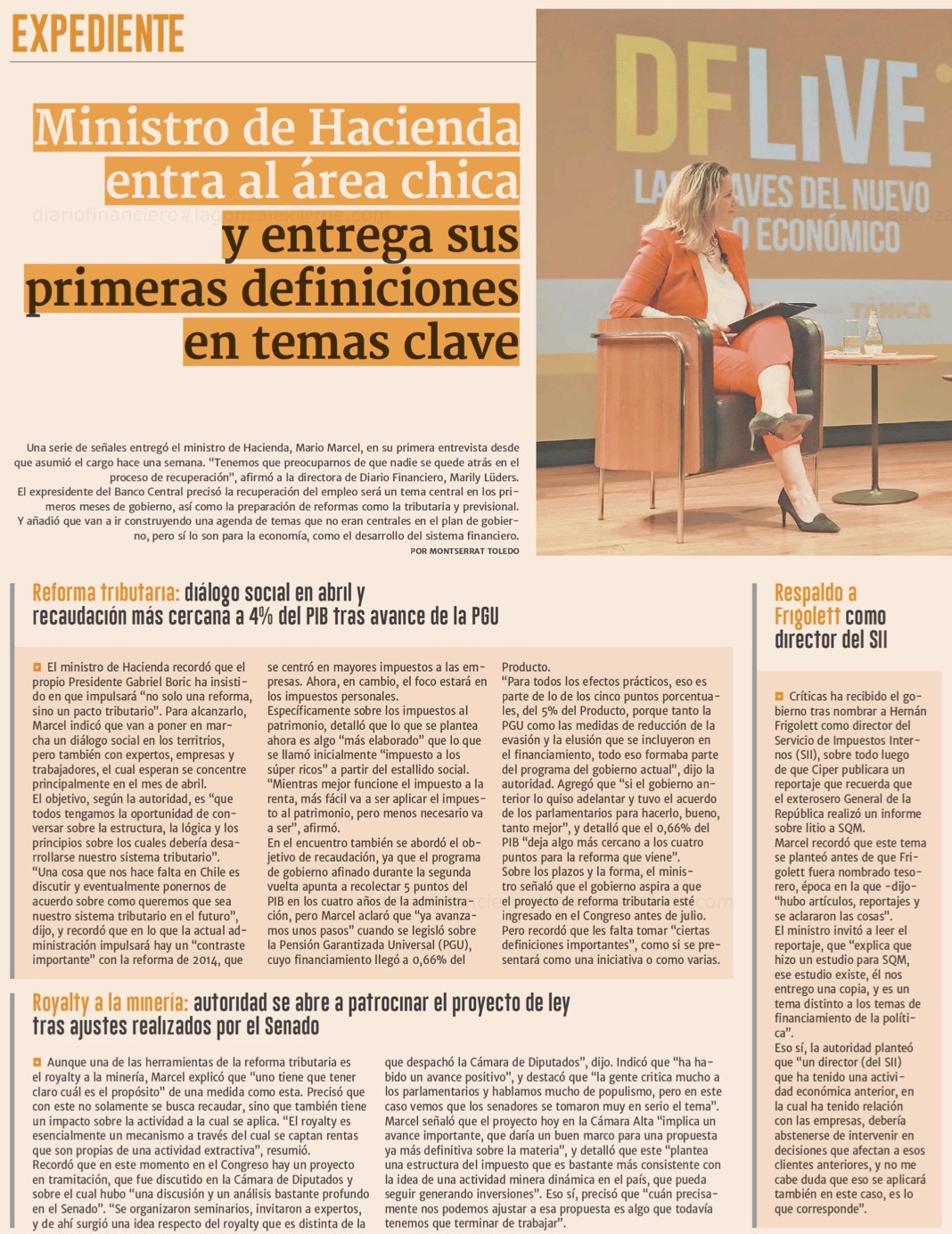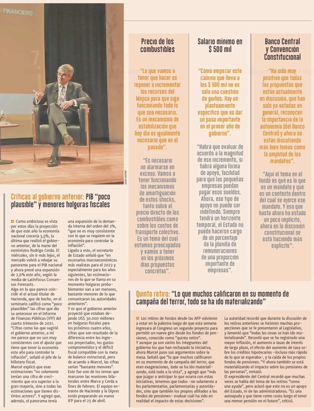 Marcel advierte que cifras del Gobierno anterior “son poco plausibles” y las actualizará - (El Mercurio de Santiago)