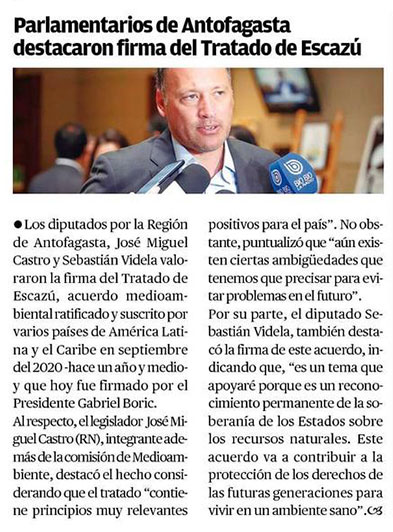 Boric suscribe Escazú: Ministra Rojas promete que bajará conflictividad ambiental - (La Segunda)