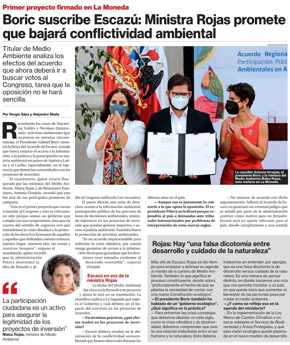 Canciller Urrejola descarta “pérdida de soberanía” de ratificarse acuerdo de Escazú - (El Mercurio de Santiago)