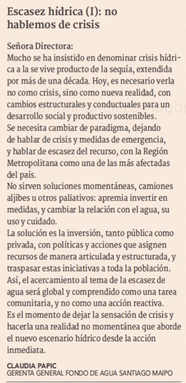 Escasez hídrica (IV): una crisis social - (Diario Financiero)
