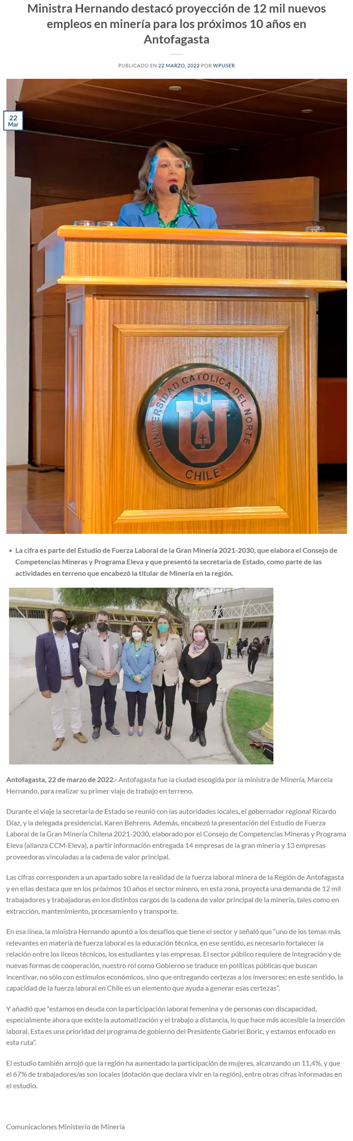 Ministra Hernando destacó proyección de 12 mil nuevos empleos en minería para los próximos 10 años en Antofagasta - (eloradorilustrado.cl)