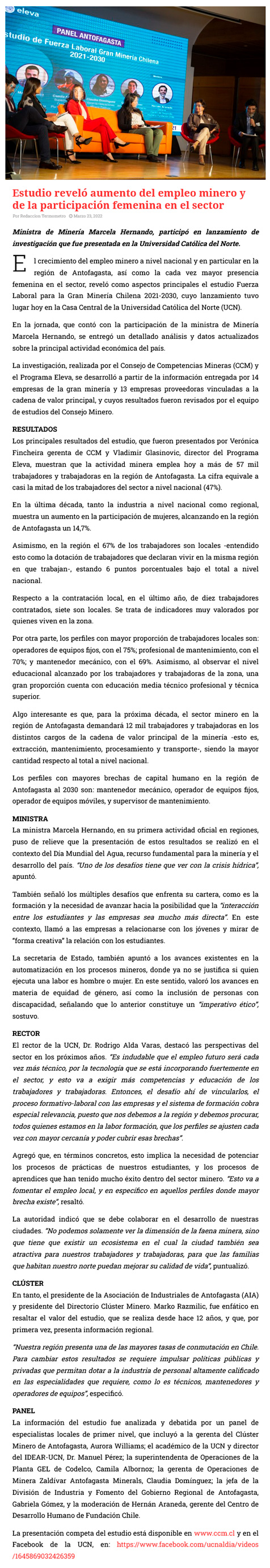 Ministra Hernando destacó proyección de 12 mil nuevos empleos en minería para los próximos 10 años en Antofagasta - (mvcomunicaciones.cl)
