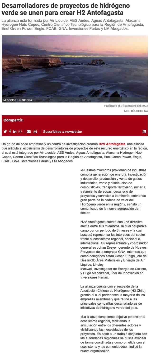 Desarrolladores de proyectos de hidrógeno verde se unen para crear H2 Antofagasta - (revistaei.cl)