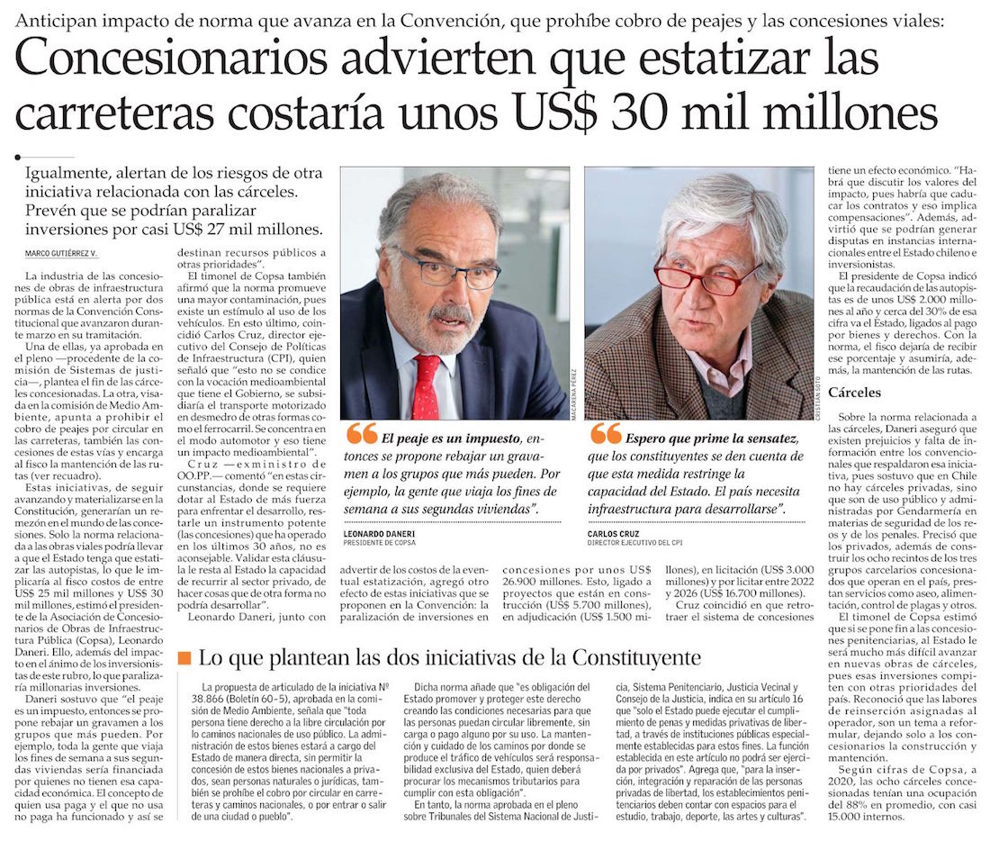 Sector de infraestructura levanta alertas por norma que aprobó Comisión de la CC que prohíbe al Estado concesionar caminos - (Pulso)