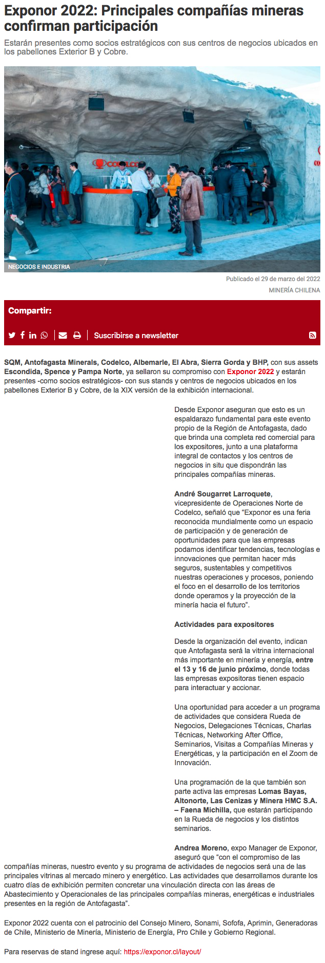 Principales compañías mineras se toman EXPONOR 2022 - (norteyenergia.cl)