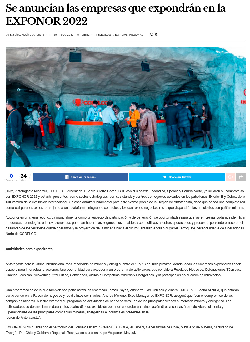 Exponor 2022: Principales compañías mineras confirman participación - (mch.cl)
