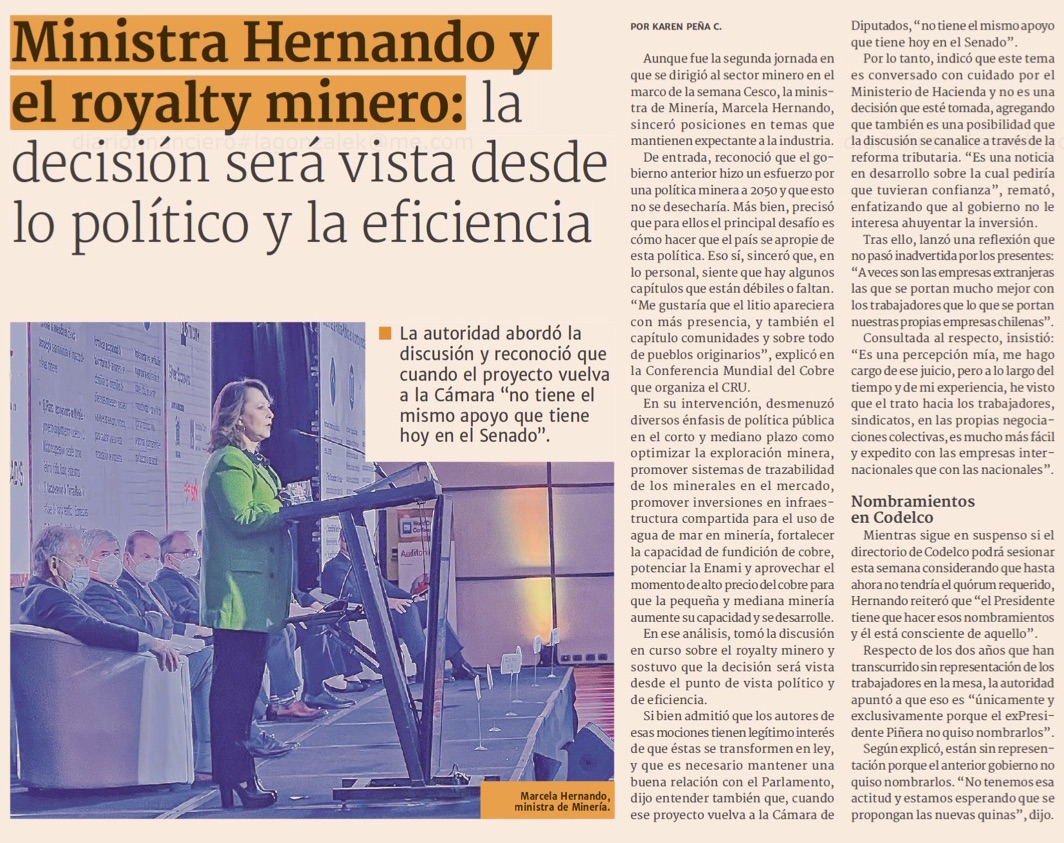 Ministra de Minería: impuesto a mineras podría legislarse en amplia reforma tributaria - (bloomberglinea.com)