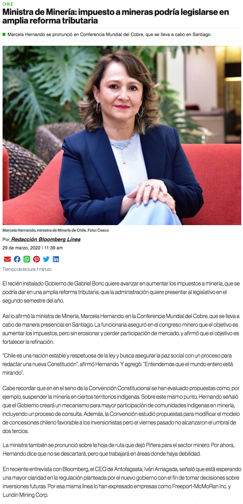 Ministra Hernando y el royalty minero: la decisión será vista desde lo político y la eficiencia - (Diario Financiero)