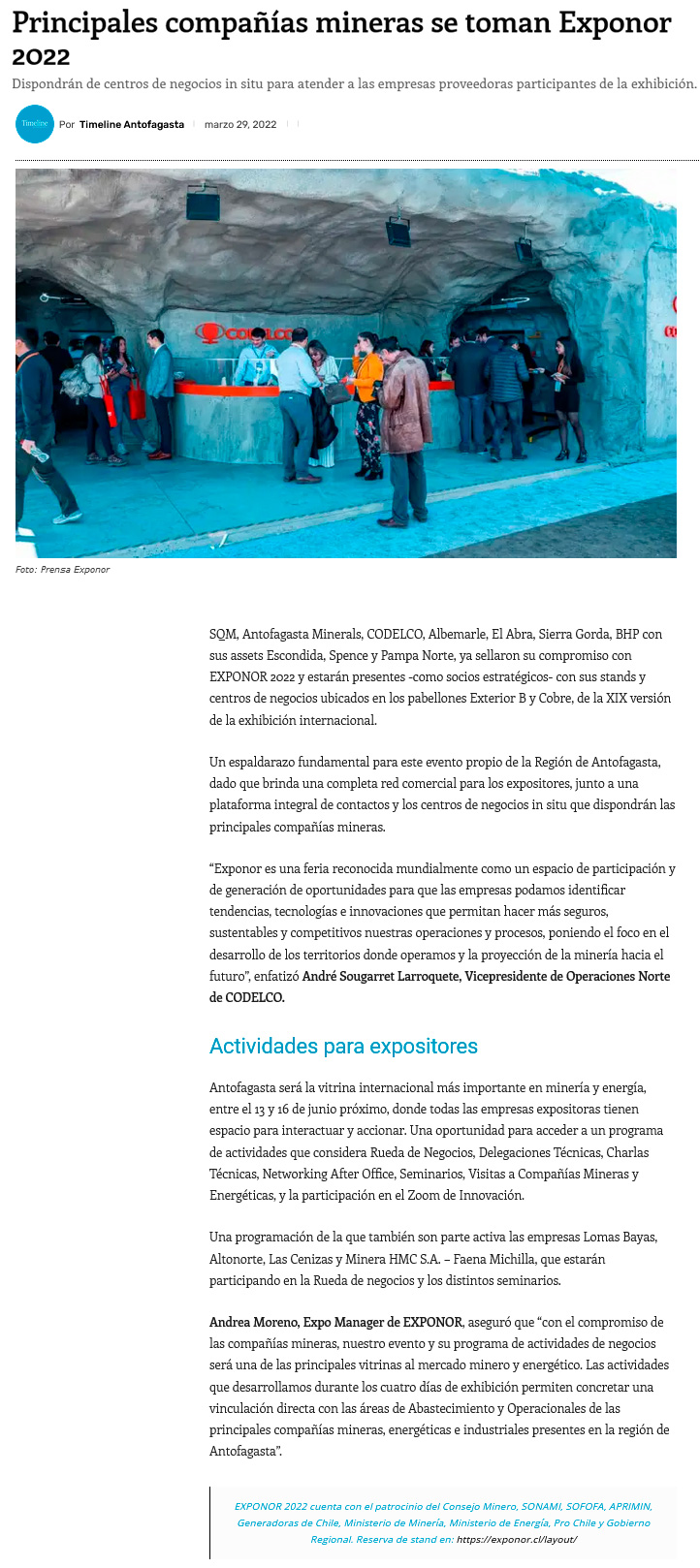 Principales compañías mineras se toman EXPONOR 2022 - (norteyenergia.cl)