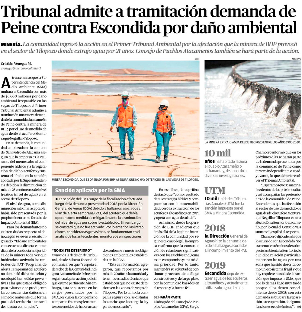 Antofagasta: Tribunal acogió demanda por daño ambiental contra Minera Escondida - (cooperativa online)