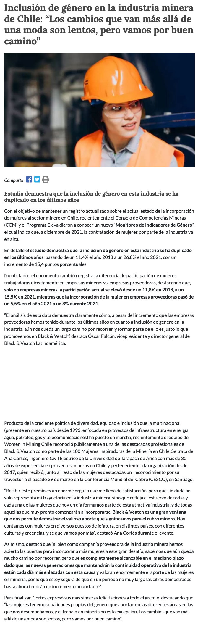 Inclusión de género en la industria minera de Chile: “Los cambios que van más allá de una moda son lentos, pero vamos por buen camino” - (alternativafm.cl)