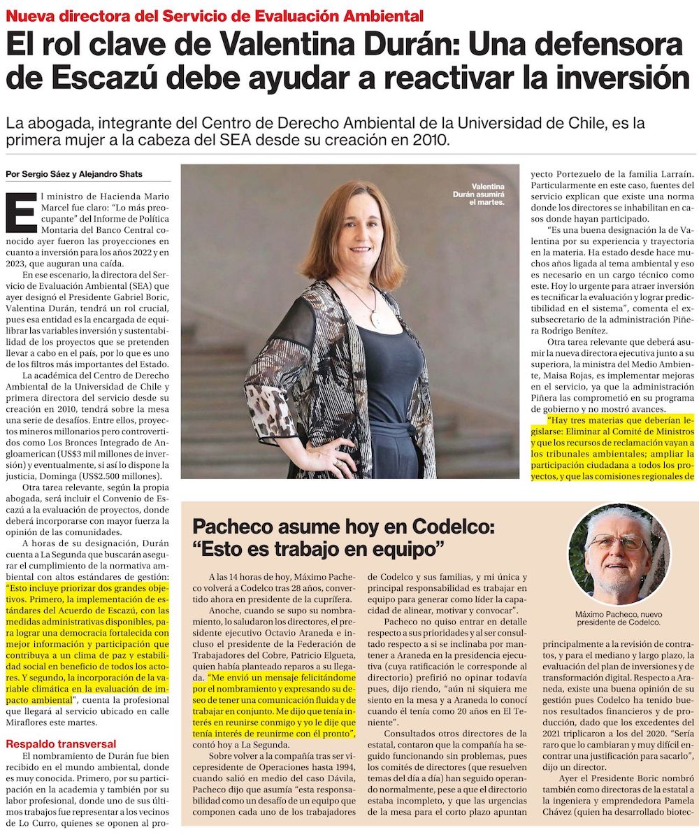 Valentina Durán es la nueva directora ejecutiva del Servicio de Evaluación Ambiental - (mch.cl)
