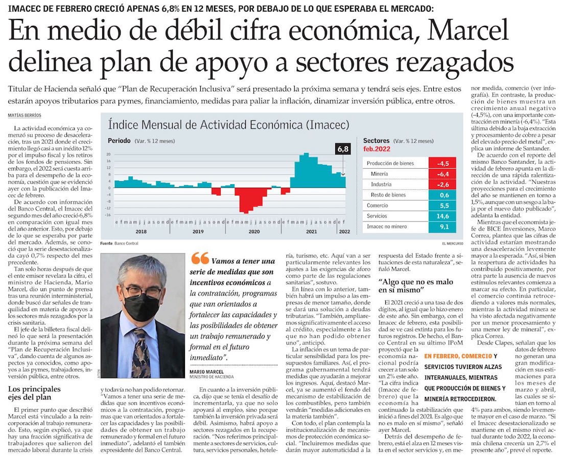 Mario Marcel: “Hacer reformas ambiciosas requiere una economía sólida y finanzas públicas sostenibles. No es un tema de ser ortodoxo o neoliberal” - (Pulso)