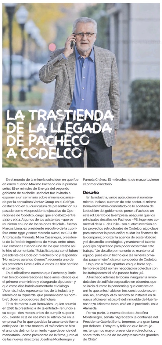 El aterrizaje de Máximo Pacheco en Codelco - (El Mercurio de Santiago)