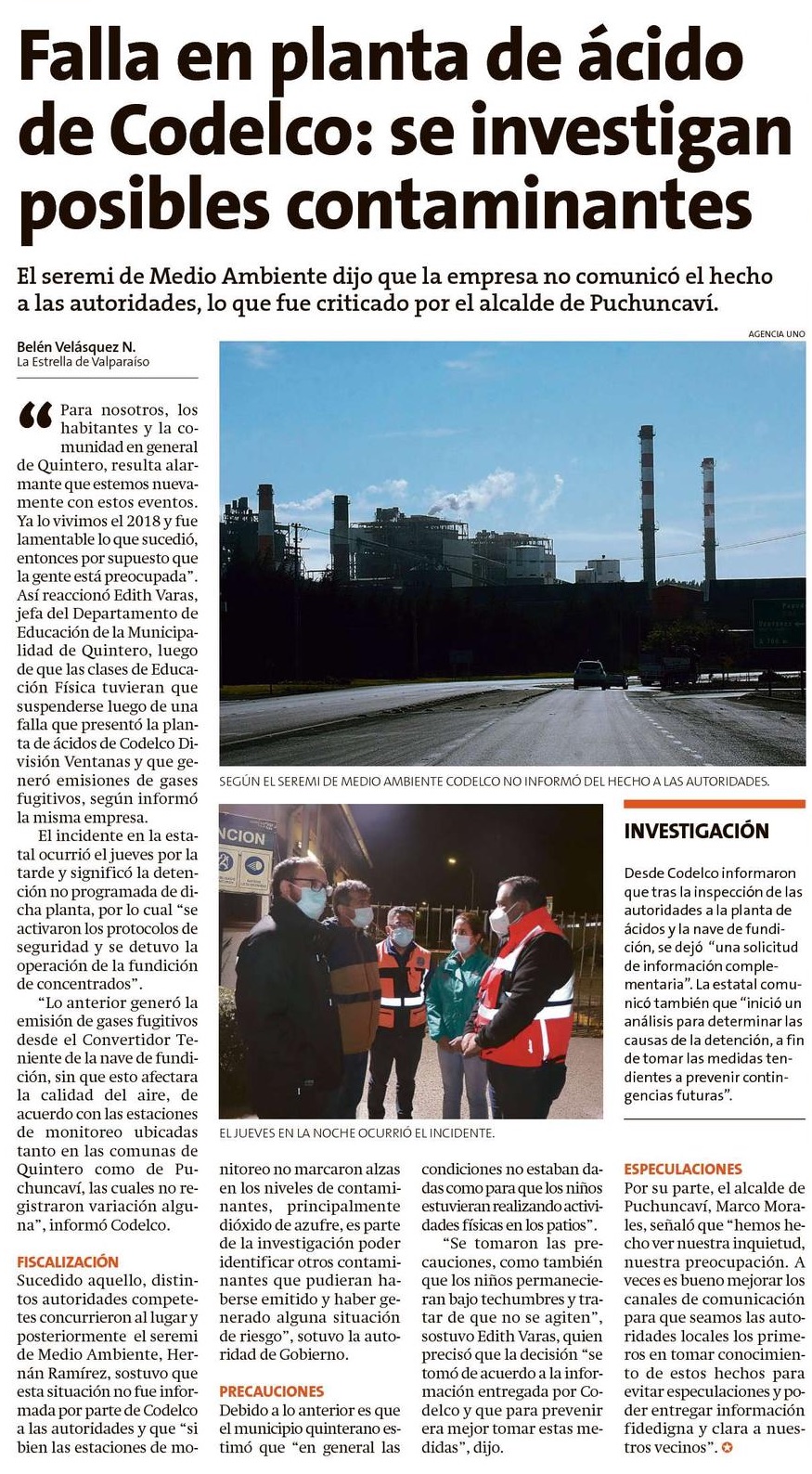 Fundición Ventanas sufre fuga de gases tras una falla - (El Mercurio de Santiago)