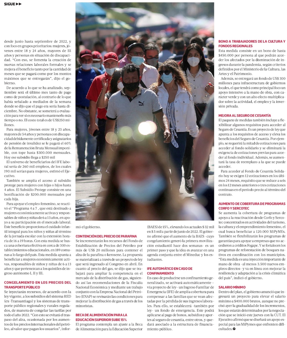 Plan de recuperación apunta a generar 500 mil empleos y la mitad sería para mujeres - (El Mercurio de Santiago)