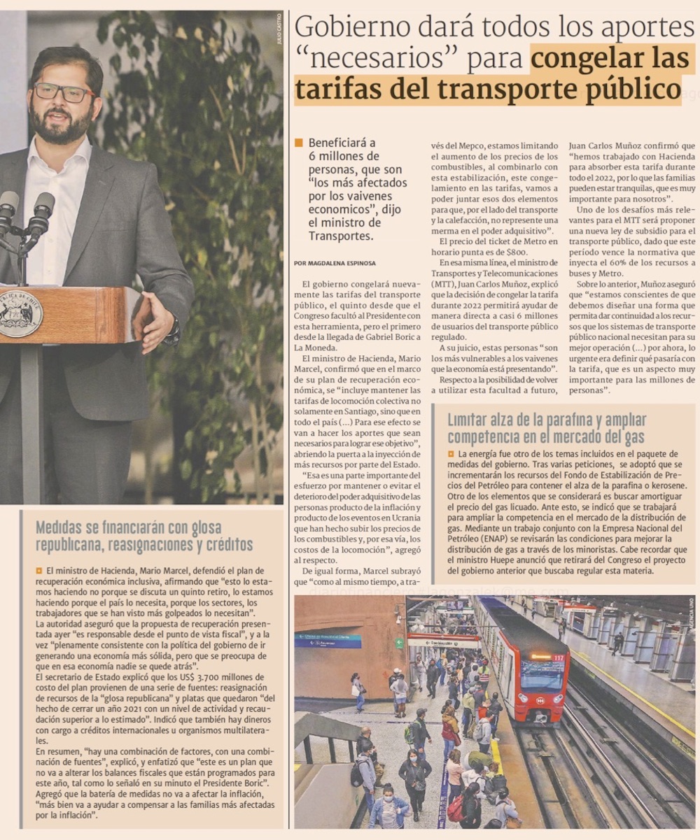Plan del gobierno congela precios del transporte público, sube el IFE laboral hasta $300 mil y busca generar 500 mil empleo - (Pulso)