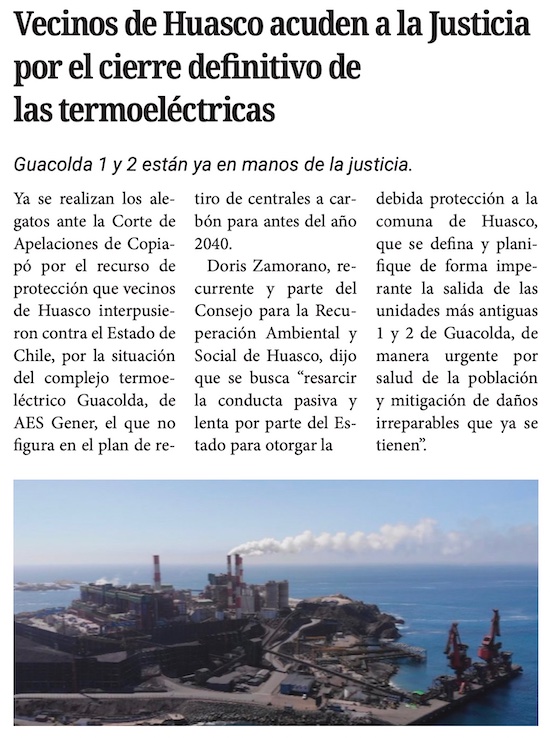 Vecinos de Huasco acuden a la Justicia por el cierre definitivo de las termoeléctricas Guacolda 1 y 2 - (cooperativa online)
