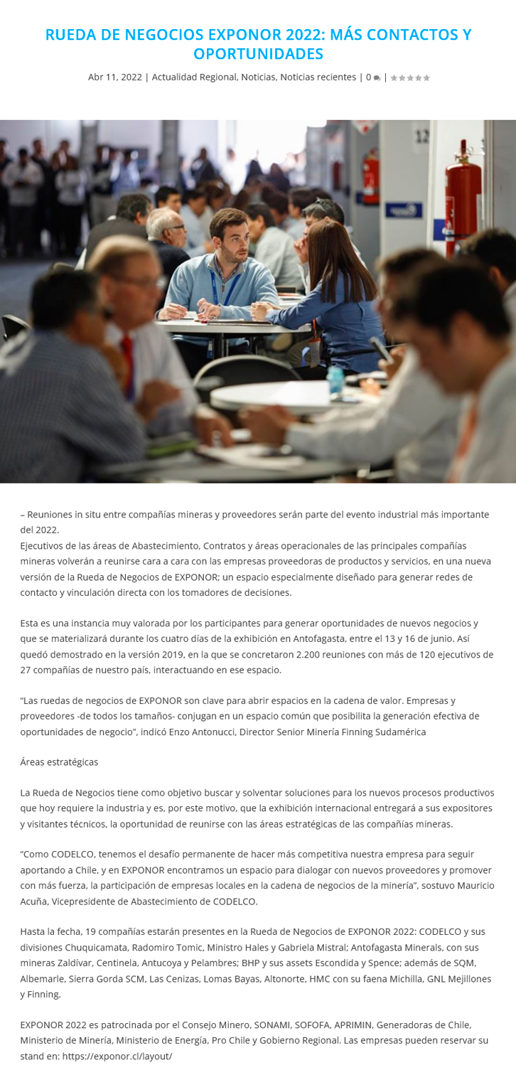 Rueda de Negocios Exponor 2022: Más contactos y oportunidades - (mch.cl)