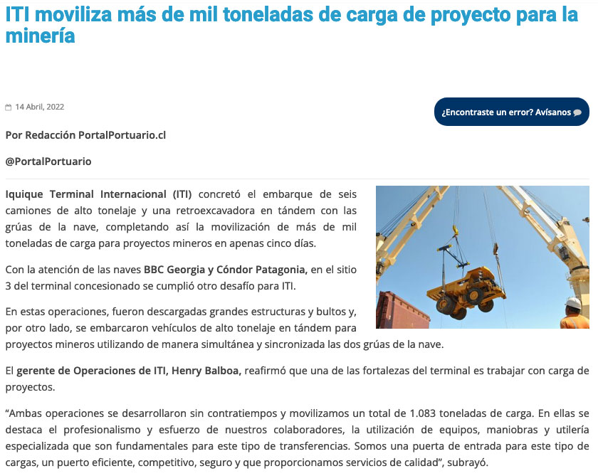 Movilizan más de mil toneladas de equipo para la minería - (Estrella de Iquique)