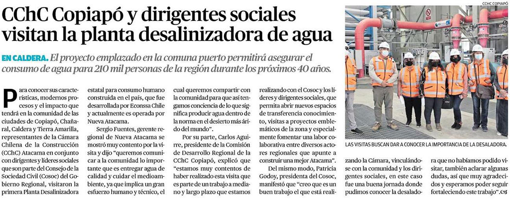 Cuatro comunas de Atacama ya reciben el 20% de agua potable producida en desaladora de Caldera - (El Mercurio de Santiago)