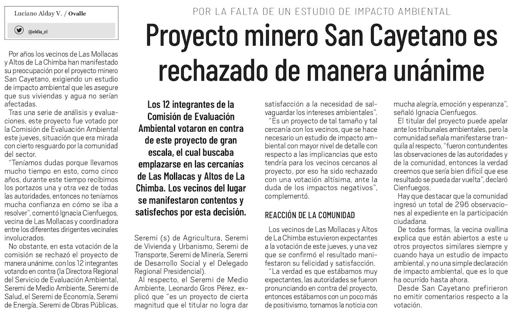 Autoridad ambiental rechaza ampliación de controvertidas faenas de Minera Cayetano en Ovalle - (biobiochile online)