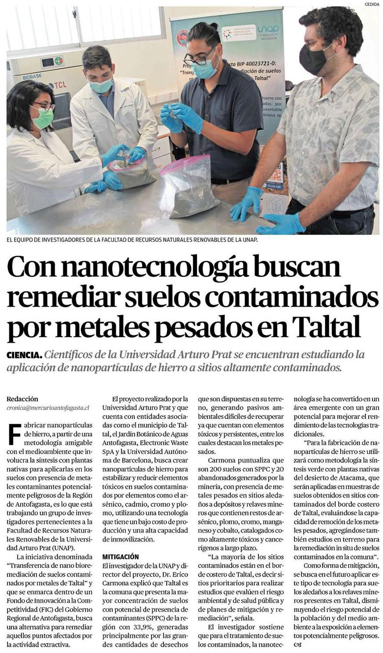 Buscan remediar suelos contaminados por metales pesados con nanotecnología - (El Mercurio de Calama)