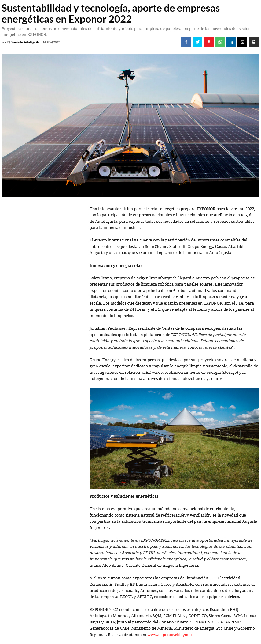 Sustentabilidad y tecnología: empresas del sector energético participarán en Exponor 2022 - (biobiochile online)