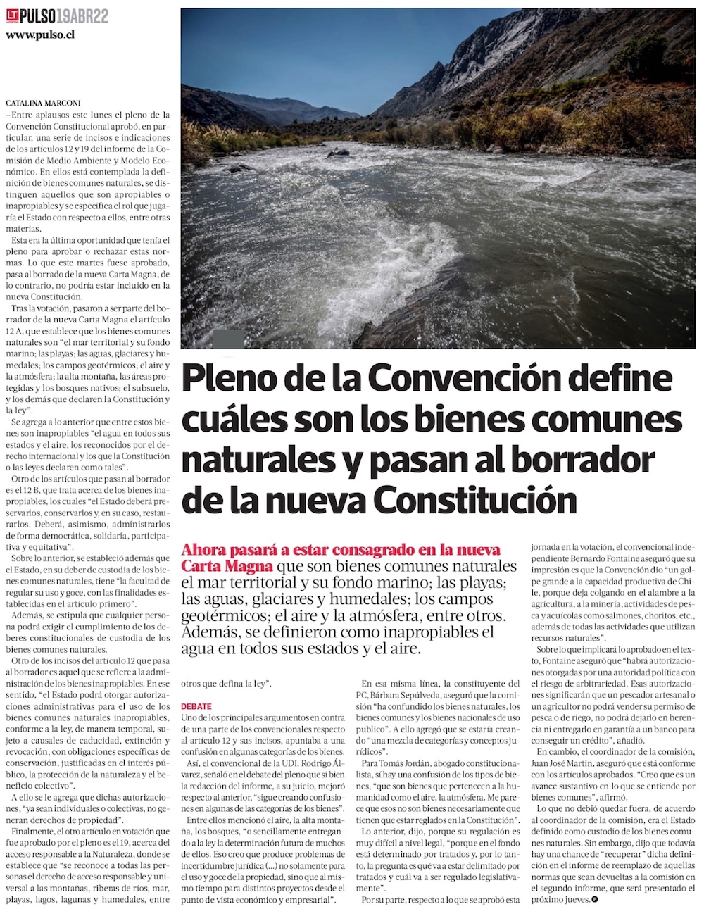 Pleno de la Convención aprueba que agua y aire serán bienes “inapropiables” - (Diario Financiero)