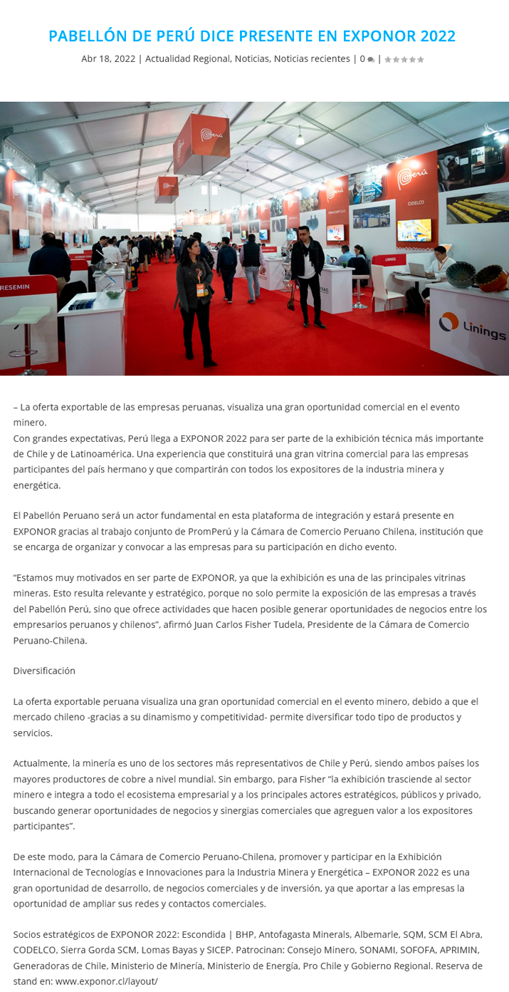 Pabellón de Perú dice presente en Exponor 2022 - (diarioantofagasta)