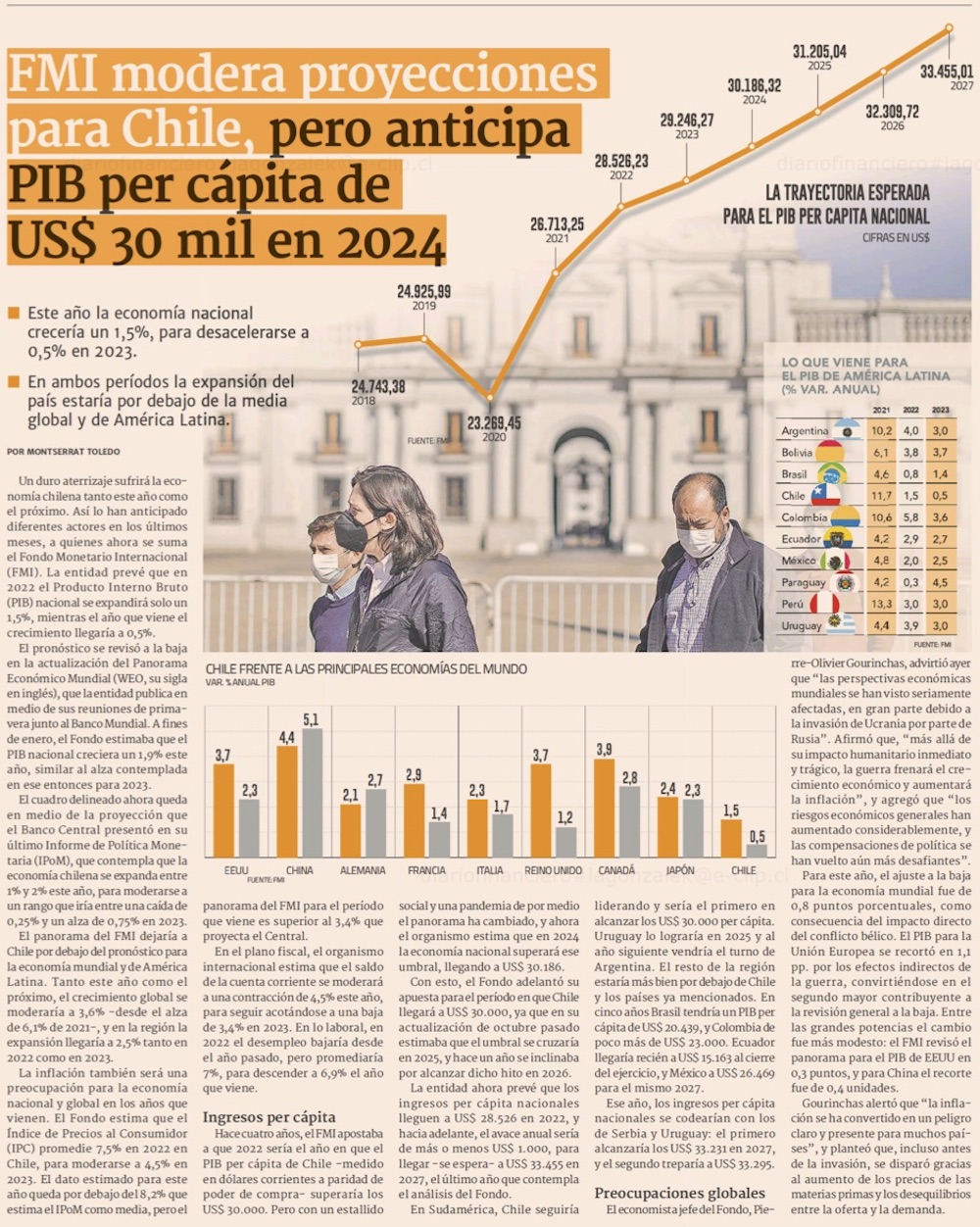 FMI vuelve a reducir proyección de crecimiento para Chile este año y prevé una fuerte desaceleración en 2023 - (Pulso)
