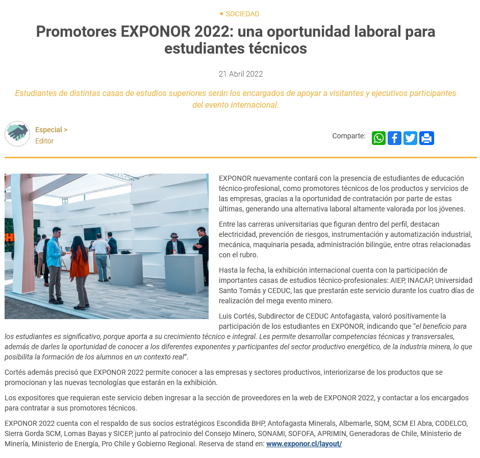 Promotores Exponor 2022: una oportunidad laboral para estudiantes técnicos - (norteyenergia.cl)
