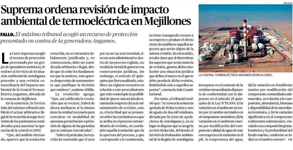 Corte Suprema ordena revisión extraordinaria de impacto ambiental de central termoeléctrica en Mejillones - (elperiodista.cl)
