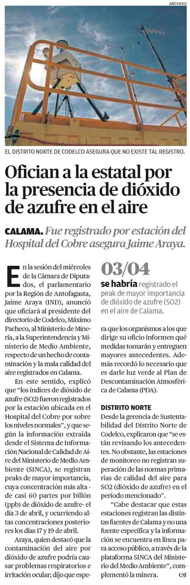Diputado Jaime Araya fiscaliza a Codelco por contaminación en Calama - (madero.cl)