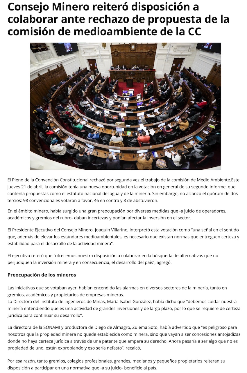 Consejo Minero reiteró disposición a colaborar ante rechazo de propuesta de la comisión de medioambiente de la CC - (portalminero)