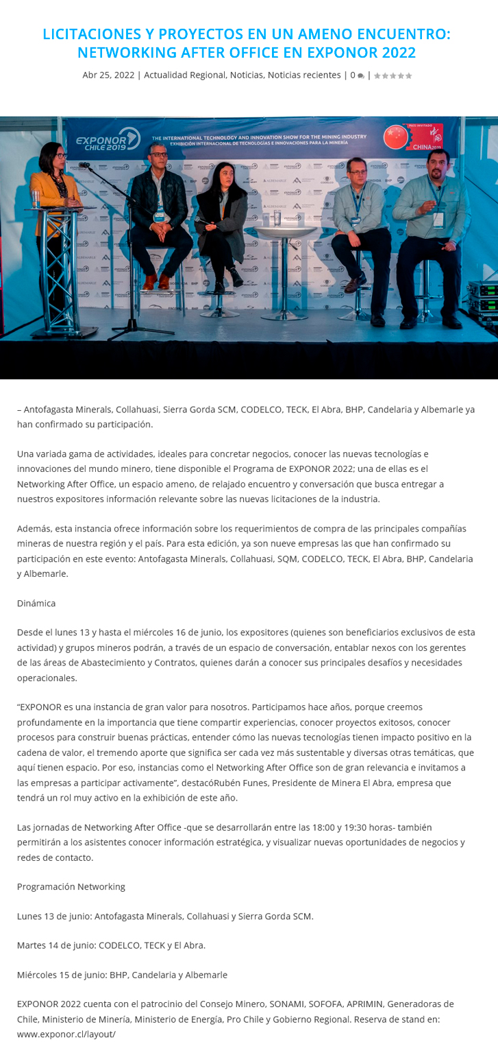 Licitaciones y proyectos en un ameno encuentro: Networking After Office en EXPONOR 2022 - (timeline)