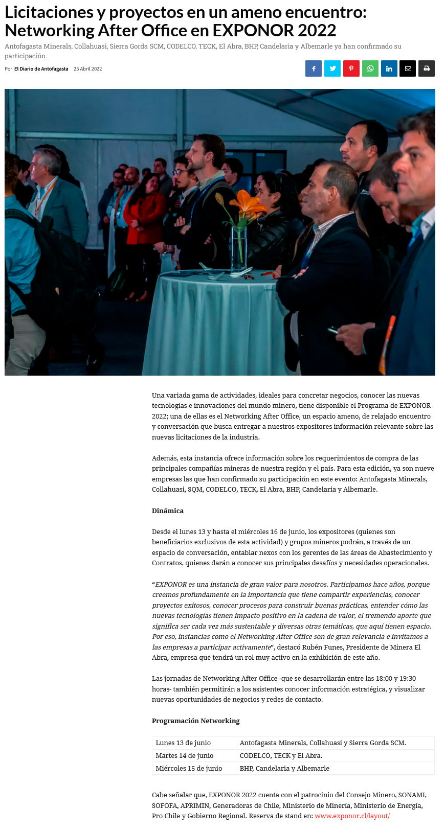Licitaciones y proyectos en un ameno encuentro: Networking After Office en EXPONOR 2022 - (timeline)