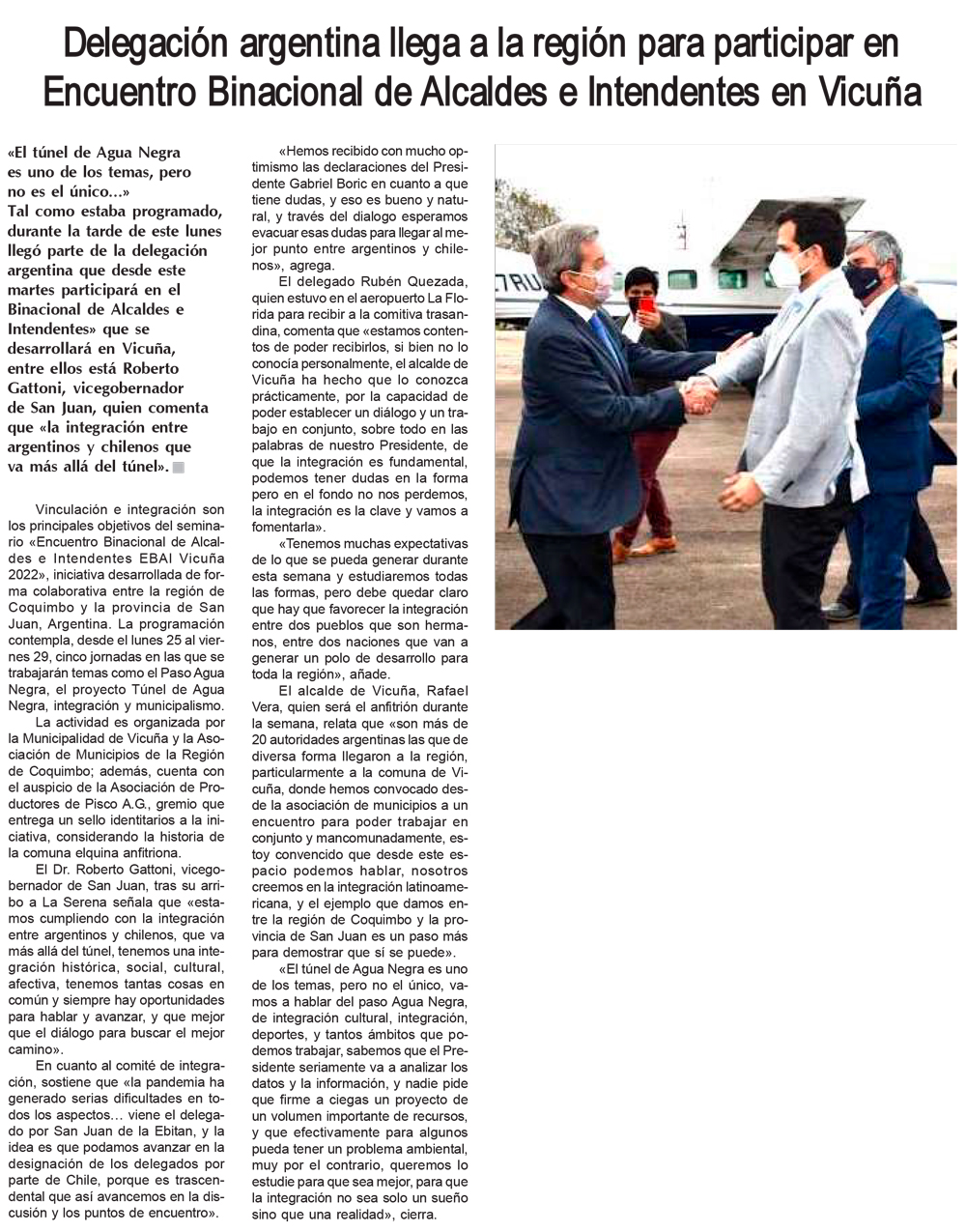 Agua Negra será el eje de encuentro binacional de municipios en Vicuña - (El Día)