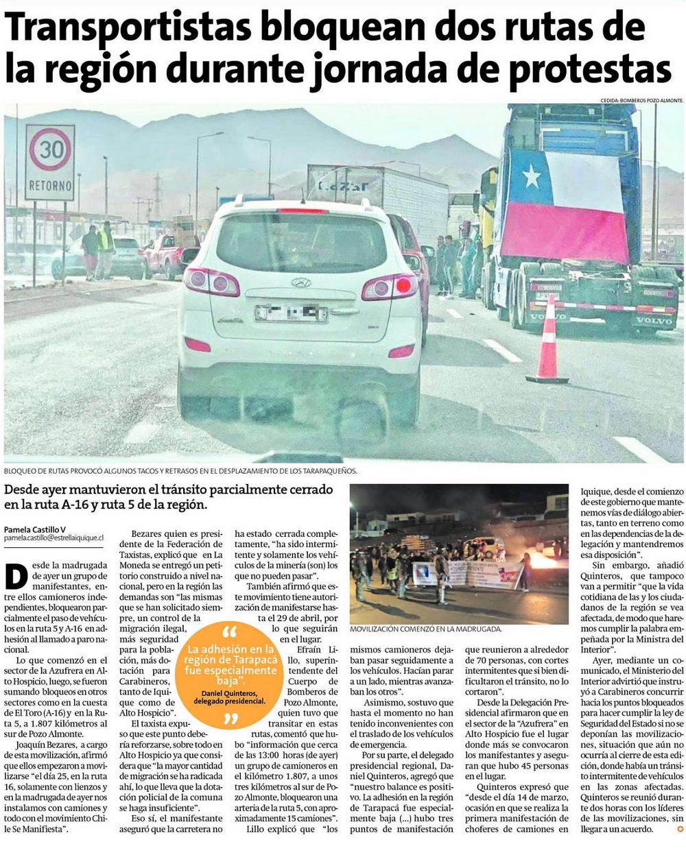 Gobierno aplica Ley de Seguridad del Estado tras cortes de rutas en El Loa - (El Mercurio de Calama)